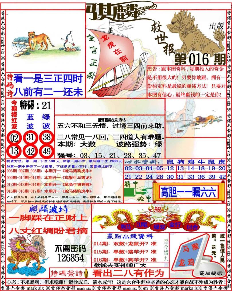 麒麟救世报/大刀皇/广州传真中特诗/广州传真猜特诗